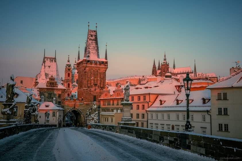 Pozoruhodné fotky Karlova mostu v zimním období jsou jednou z nejdůležitějších součástí vaší návštěvy v Praze. Podívejte se na tento fantastický snímek Karlova mostu v pozdní mrazivé ráno a nechte se nadchnout jeho nádhernou panoramatickou krásou.